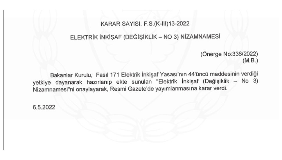 Kararda, Nisan 2022 ayı tüketimi faturalarında tüm tarifelere uygulanan Yakıt Değişim Değeri karşılığı ücretinin ve buna denk gelen KDV tutarın tüketicilerin tüketim bakiyesinden düşürüleceği belirtildi.