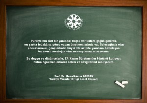Türkiye Yazarlar Birliği Genel Başkanı Prof. Dr. Musa Kâzım Arıcan 24 Kasım Öğretmenler günü dolayısıyla bir mesaj yayınladı